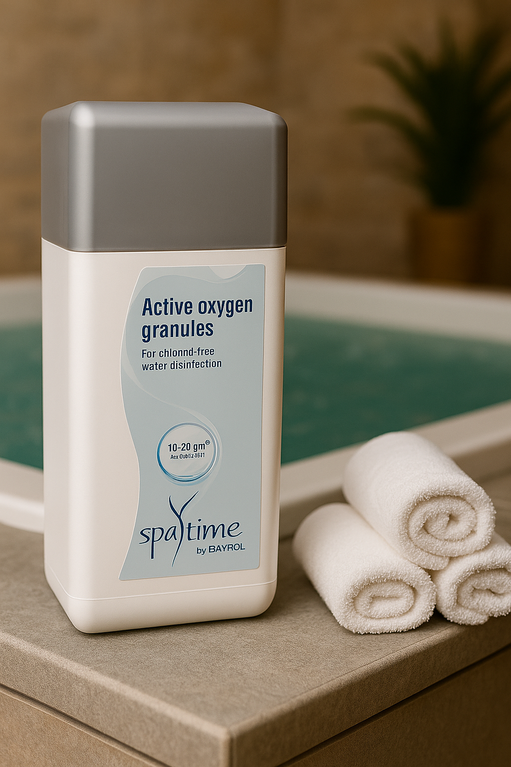 Bayrol aktivni kisik u granulama omogućuje dezinfekciju vode na brz i pouzdan način. Nema miris klora i ne utječe na pH vrijednost vode. Na siguran način dezinficira vodu i nježan je prema koži i kosi. U kratkom vremenu se otopi u vodi. Preporučeno je koristiti uz Bayrol aktivni kisik – aktivator. Prije upotrebe hidromasažnog bazena potrebno je dodati 10-20 g granula na 1m3 dok je upaljena pumpa bazena kako bi se granule što prije otopile.