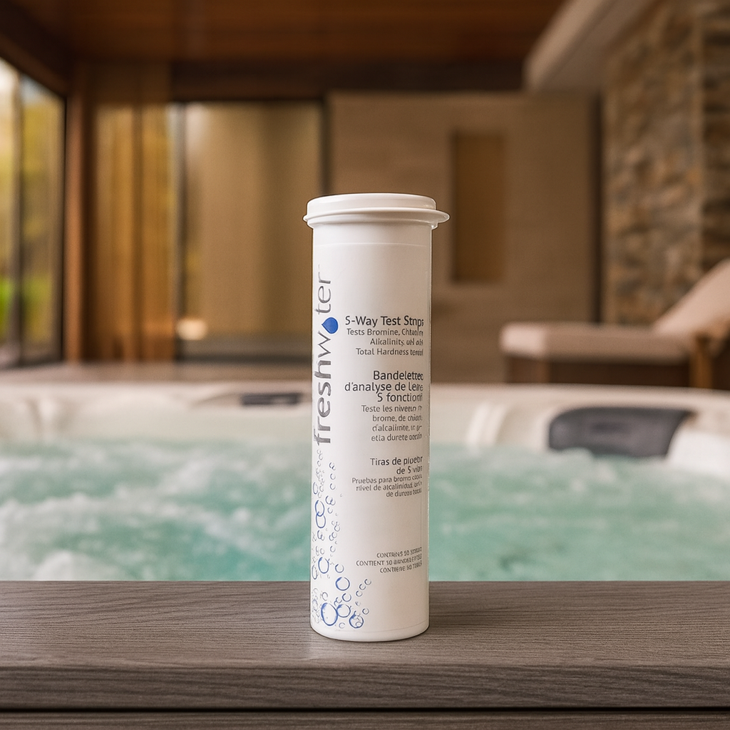 FreshWater test trakice omogućuju da se na brz i pouzdan način mjeri razina pH vrijednosti, slobodnog klora, broma, alkalitet (TA) i tvrdoća vode. Na jednostavan način provjerite ispravnost vrijednosti vode u hidromasažnom bazenu. Unutar pakiranja se nalazi 50 jednokratnih trakica.
