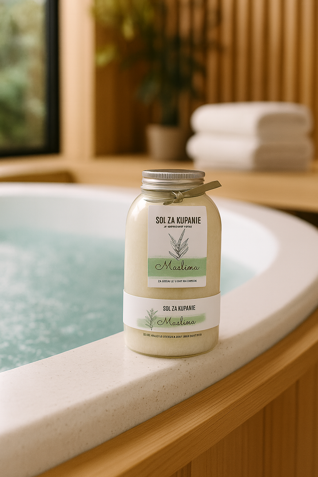 Jadranska morska sol aromatizirana svježim mirisom masline, bogata mineralima. Miris maslina se povezuje s morem. Po svom sastavu omogućuje opuštajuće djelovanje na organizam. Ručno izrađeni proizvod koji je zahvaljujući svom sastavu jedinstven i ne zamućuje vodu te ne ostavlja tragove na hidromasažnom bazenu.